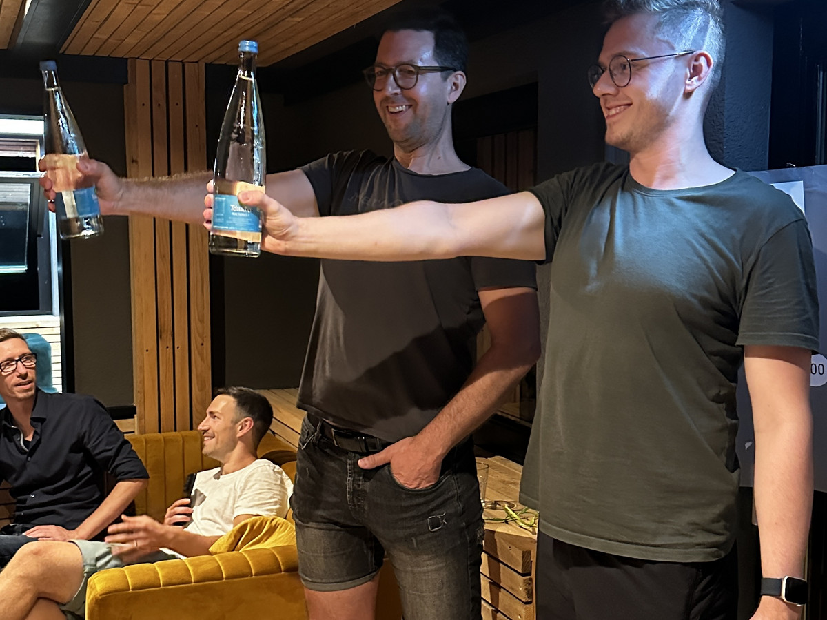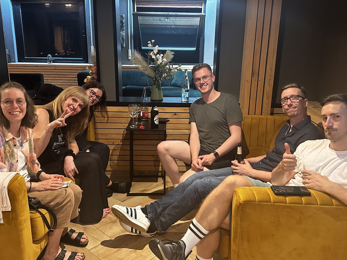 Abends gab es dann Deluxe Abendessen: das Kochteam unter der Leitung von Glenn hat uns köstliche Wraps gezaubert. Im Anschluss wurde Hitster in der großen Runde gespielt und ein paar Kolleg:innen stellten ihre Präsentationsskills beim PowerPoint-Karaoke vor. Über die Stadt Bremen, Laubbäume und die Entwicklung der Toilette waren wir danach jedenfalls top informiert!