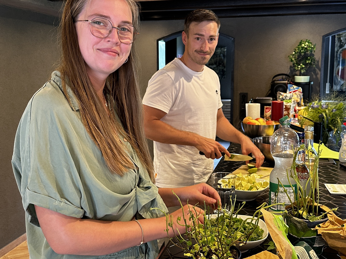 Die 1A-Verpflegung ging abends munter weiter: Diesmal gab es das Gado Gado, ein tolles Gericht aus Indonesien. So waren wir dann auch pünktlich fertig, um gemeinsam das EM-Viertelfinalspiel zwischen Deutschland und Dänemark zu schauen. Für die Stimmung war es natürlich ideal, dass Deutschland gewonnen hat.
