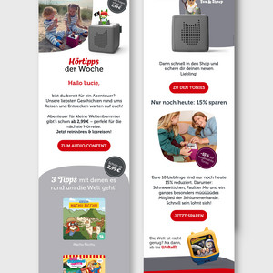 Praxisbeispiel für eine gelungene mobile Ansicht (Ausschnitte aus dem tonies Newsletter)
