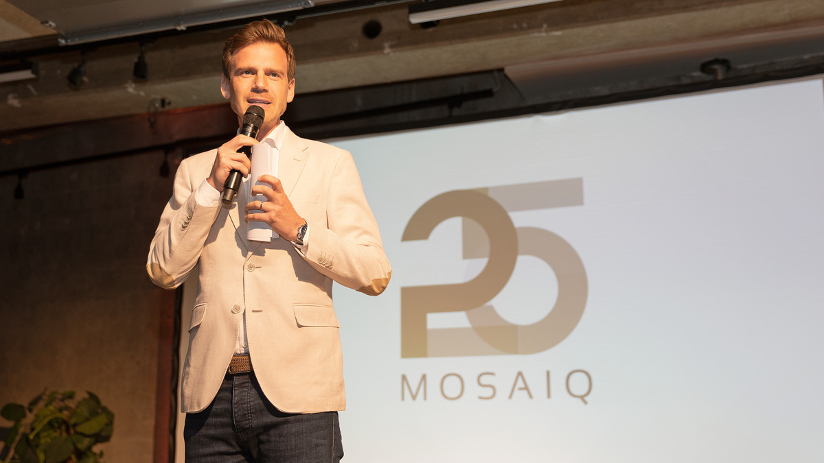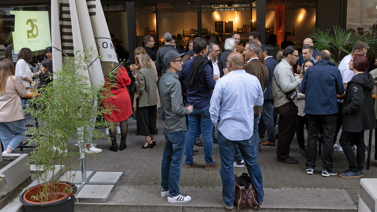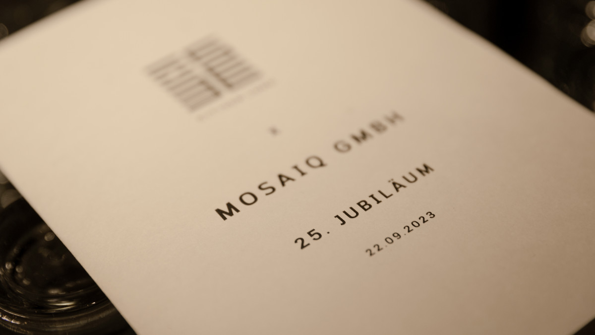 22.09.23: Der Abend wird uns allen noch lange in Erinnerung bleiben! Gemeinsam hat das Team mit Freund:innen, Familien und Kund:innen das 25-jährige Jubiläum von MOSAIQ gefeiert. Mit dem exklusiv gebuchten Citizen Long hatten wir die ideale Location für uns gefunden - und mit einer Mischung aus kurzen Reden, einer interaktiven Spiele-Session sowie leckeren Drinks und Flying Buffet ein gelungenes Rahmenprogramm. Wie sich das bei guten MOSAIQ-Festen gehört wurde bis spät in die Nacht geredet, gelacht und getanzt. Danke an alle, die den Abend zu einem unvergesslichen Erlebnis für uns alle gemacht haben!