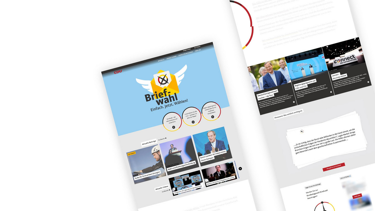 The FDP and Green Party pages are somewhat more minimalist in design, making them pleasantly simple without appearing boring. There is a lot of movement on the CDU page, which tends to distract from the actual content. From the user's point of view, there is no page that was difficult to use. What was noticeable was that the candidates for chancellor are very much in the foreground on all pages. Unfortunately, the election program is less in focus on some pages. The Left presents the demands and solutions to the election program best on the subpages.