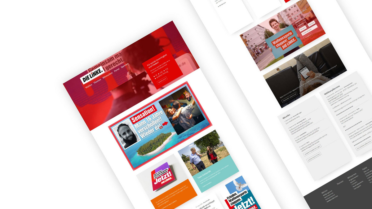 The design looks modern, appealing and simple. Red predominates as an accent color, but is combined well with other colors from the corporate design. This makes the design look very varied. With its varied modules and user-oriented content preparation, the Linke site appeals to a broad target group from young to old. The appealing presentation increases the reading time on the detailed pages.