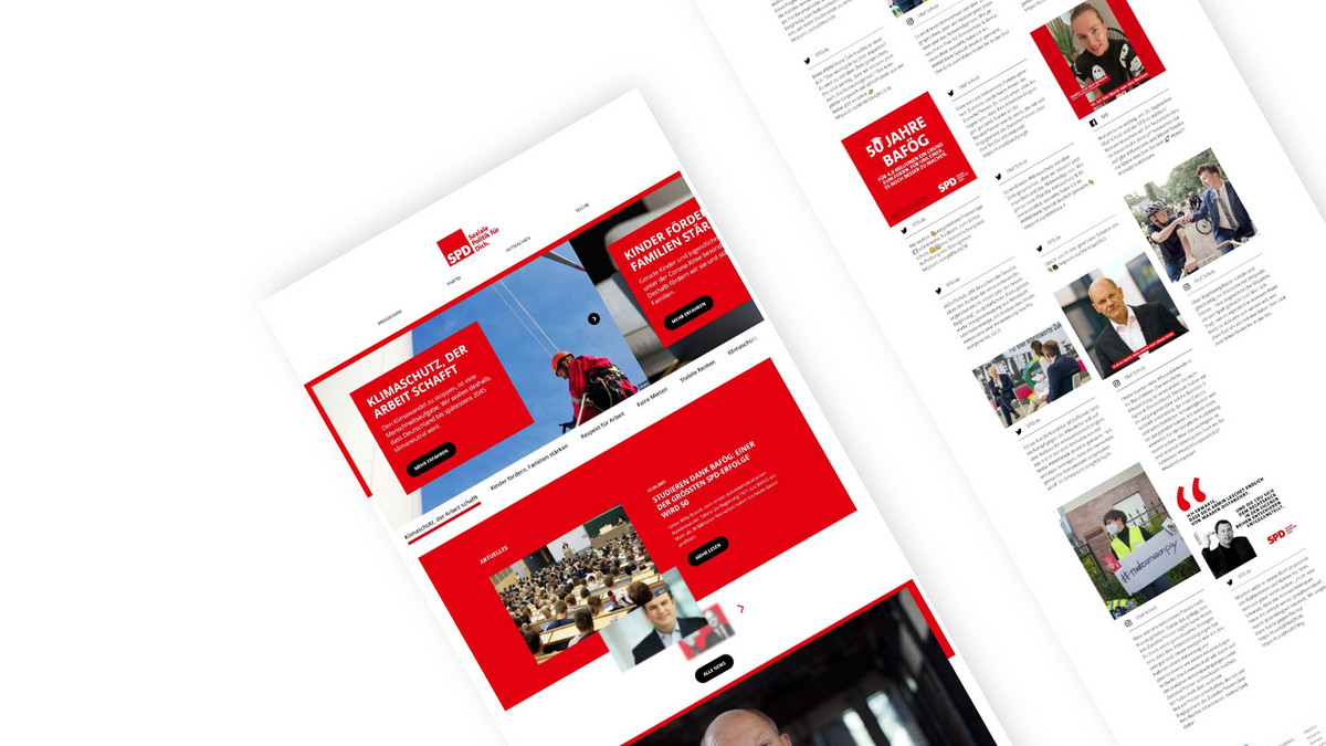 The first impression of the SPD website is basically not bad, but slightly overwhelming. There are an extremely large number of red areas, lots of buttons, with images and text in between.