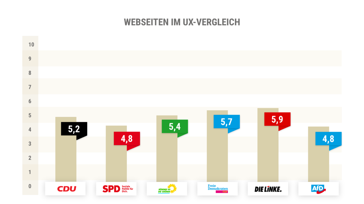 Independent of the UX-side review of the websites, the pages were also evaluated on the topic of the federal election.Do the parties communicate their goals and plans clearly on the websites?