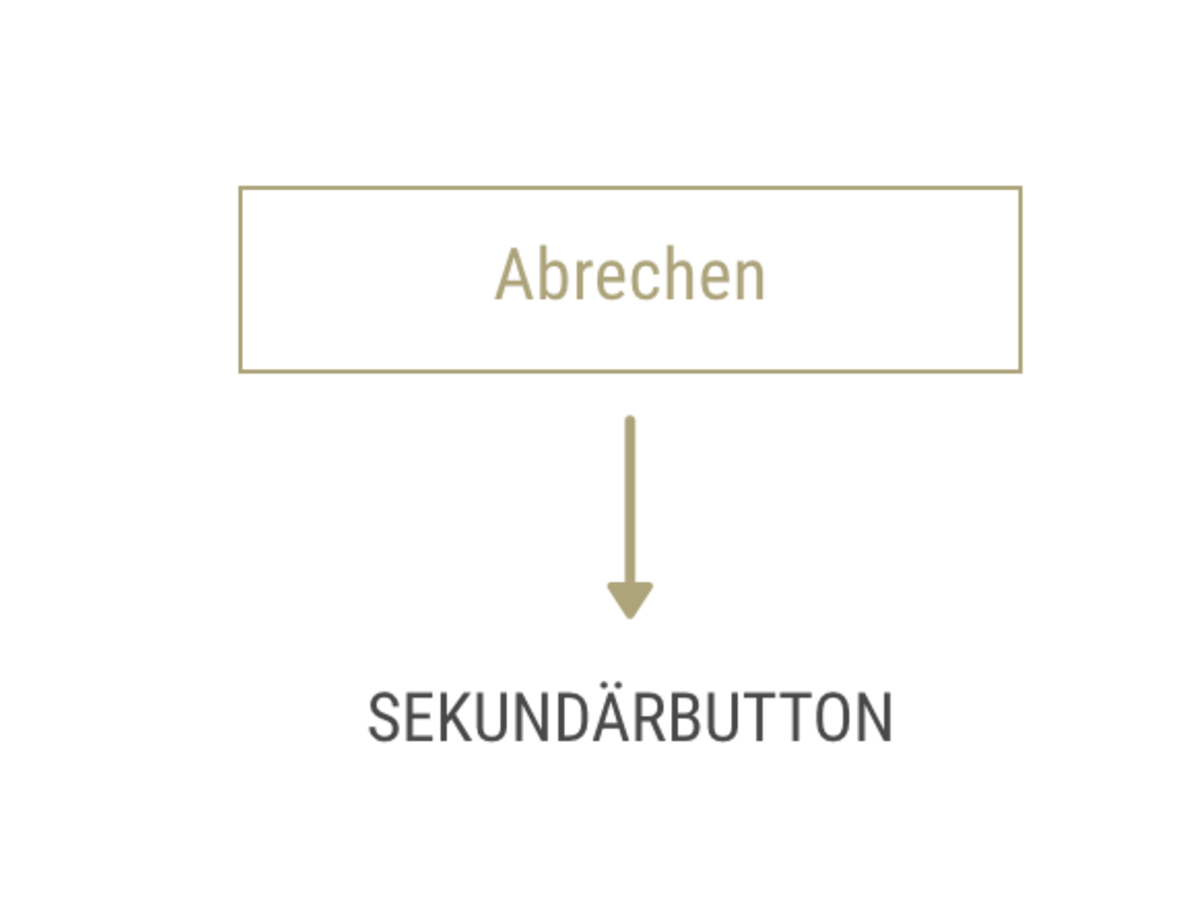 Secondary buttons are less conspicuous in terms of size, color and shape. They usually have an alternative function, such as "Cancel" or "Back". Secondary buttons are often placed next to primary buttons and thus form the alternative function.