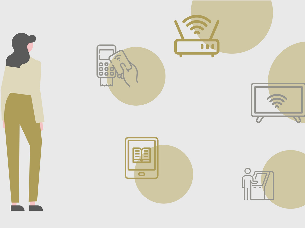 - Self-service terminals (interactive) such as payment terminals, ticket vending machines, check-in machines and ATMs