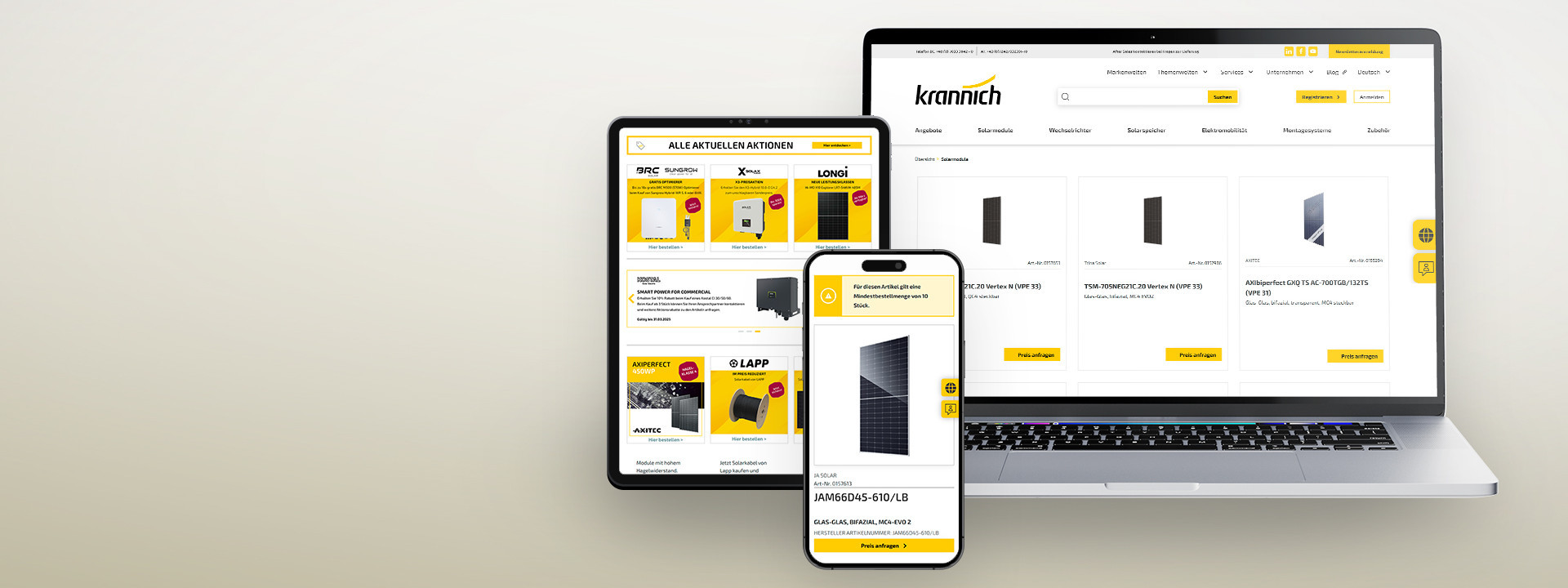 When Kurt Krannich founded the company in 1995, he was still out on the roofs installing solar systems himself. This practical experience enabled him to better understand the needs of his customers. Krannich Solar is now one of the leading photovoltaic wholesalers and system providers in Europe. The company is represented by 29 companies in 25 countries and successfully sells everything PV installers need to commission a photovoltaic system, from solar modules and inverters to storage solutions.